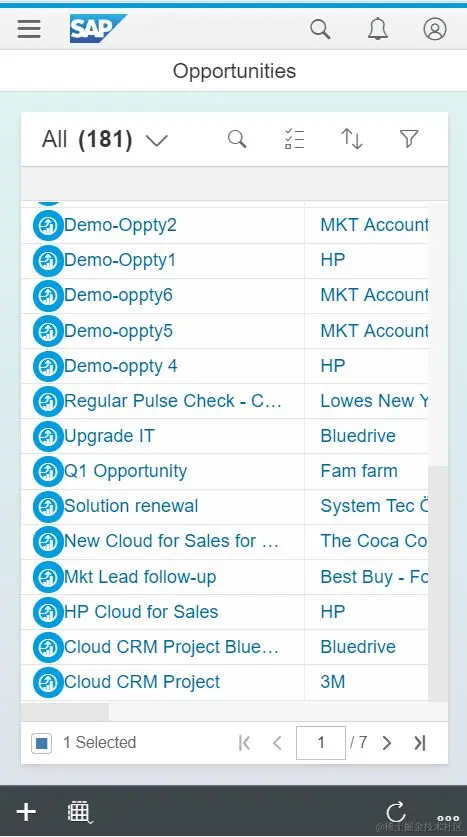 作为C4C的用户,我们以销售代表为例,他/她们会在巡店,客户拜访和各种市场活动时使用C4C 的移动端App。那下面我们就以销售代表在系统里查找一个opportunity(商机)为例,看一下C4C的表现。