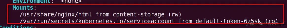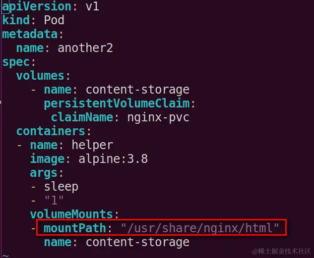 Mount:该pod使用的persistent volume对应的物理文件目录,我的例子是.usr/share/nginx/html