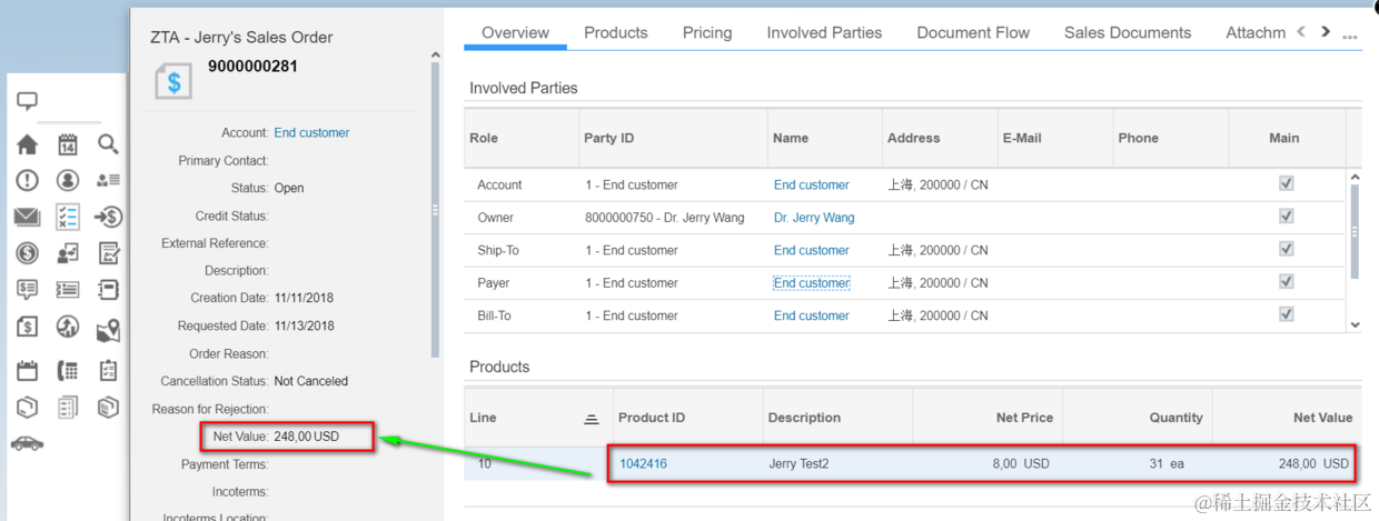 需求很简单,能够创建销售订单,在行项目里添加产品,带出价格来,同时把总价显示在销售订单抬头区域。