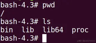 pwd发现是在根目录下,ls也只能发现执行chroot时指定的container目录下的子目录: