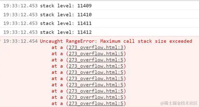 console.log("stack level: " + i)