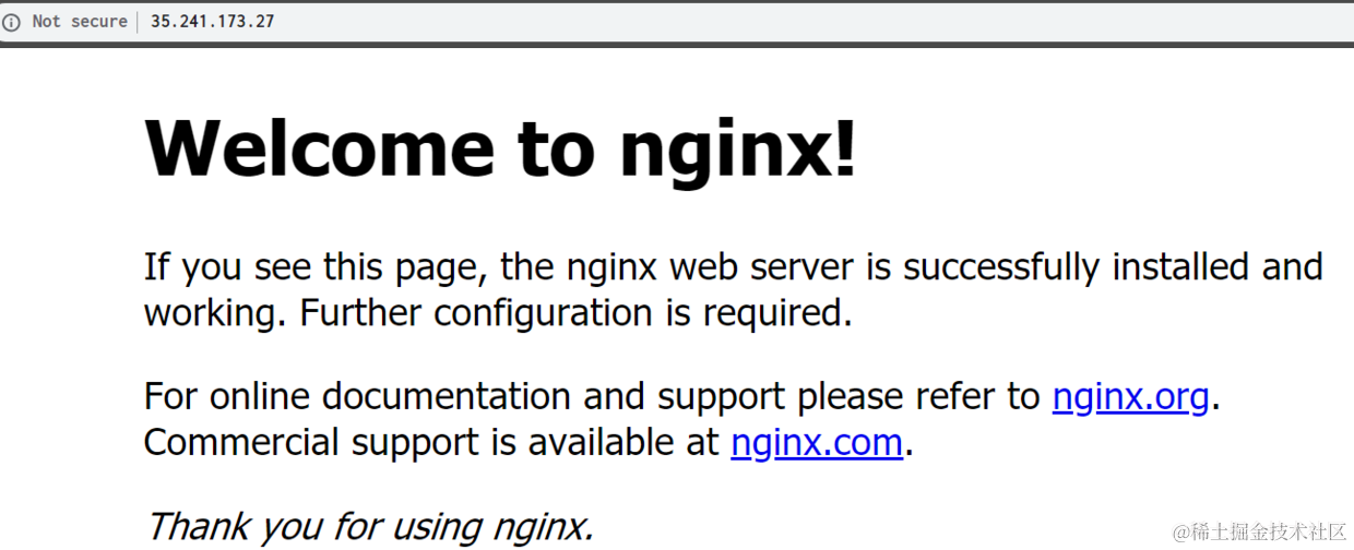 浏览器里输入External IP http://35.241.173.27:80, 能成功访问nginx服务器的index.html: