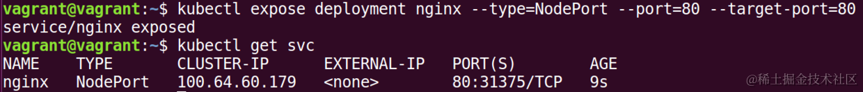 kubectl expose deployment nginx --type=NodePort --port=80 --target-port=80