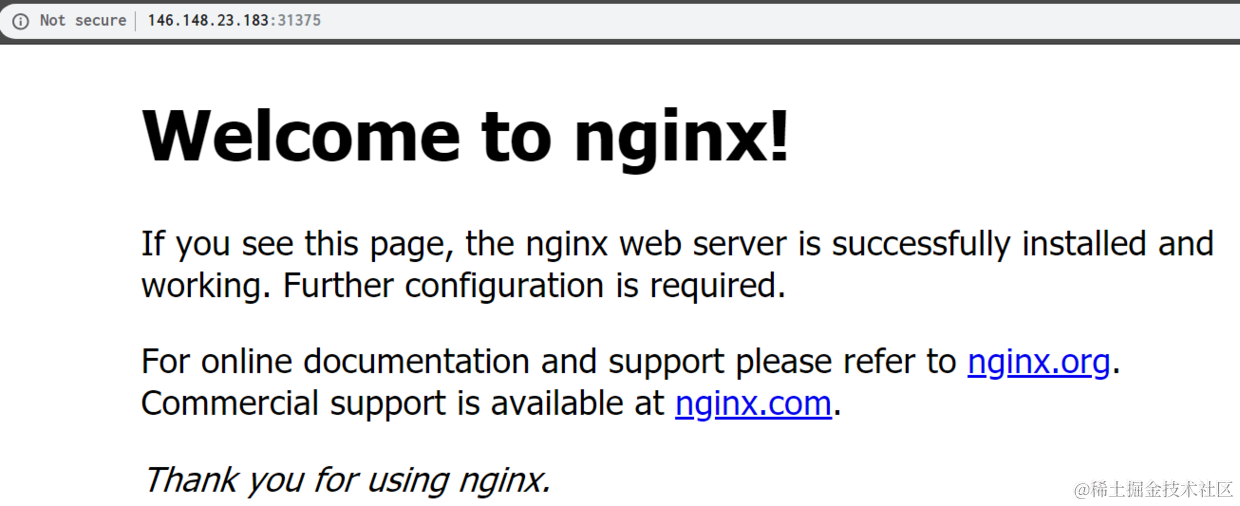 注意看下图的PORT栏下面显示的类型为NodePort的端口:31375