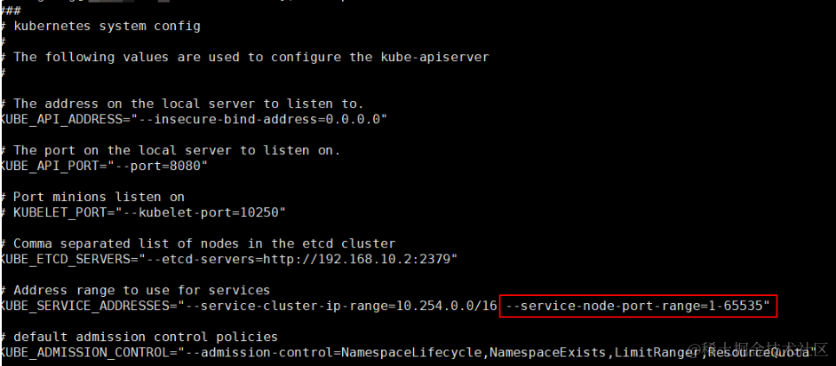这个端口号是Kubernetes expose命令自动生成的,范围在30000到32767之间。如果需要修改,可以编辑api server的配置文件:/etc/kubernetes/apiserver: