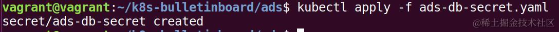 执行如下命令下,将输出重定向到一个名为ads-db-secret的yaml文件里。