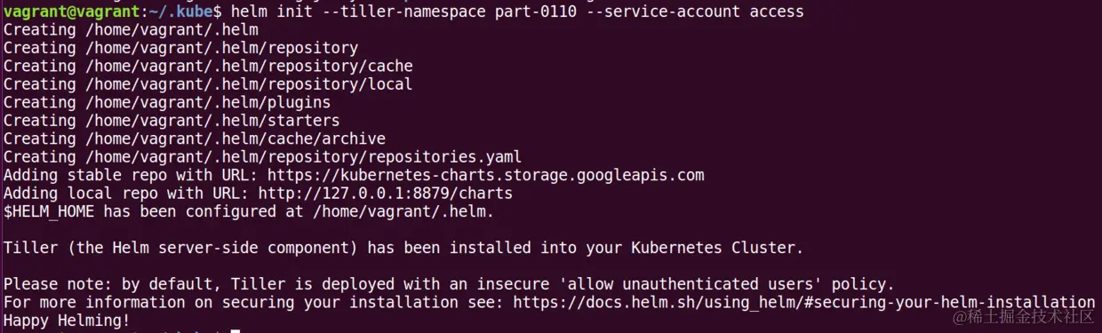 $HELM_HOME has been configured at /home/vagrant/.helm.
