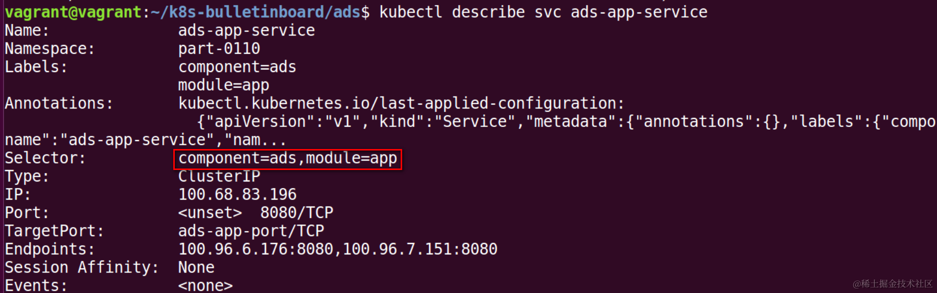 用kubectl create -f创建service,因为类型设置为ClusterIP,但没有指定具体的IP地址,因此创建时自动生成了一个。