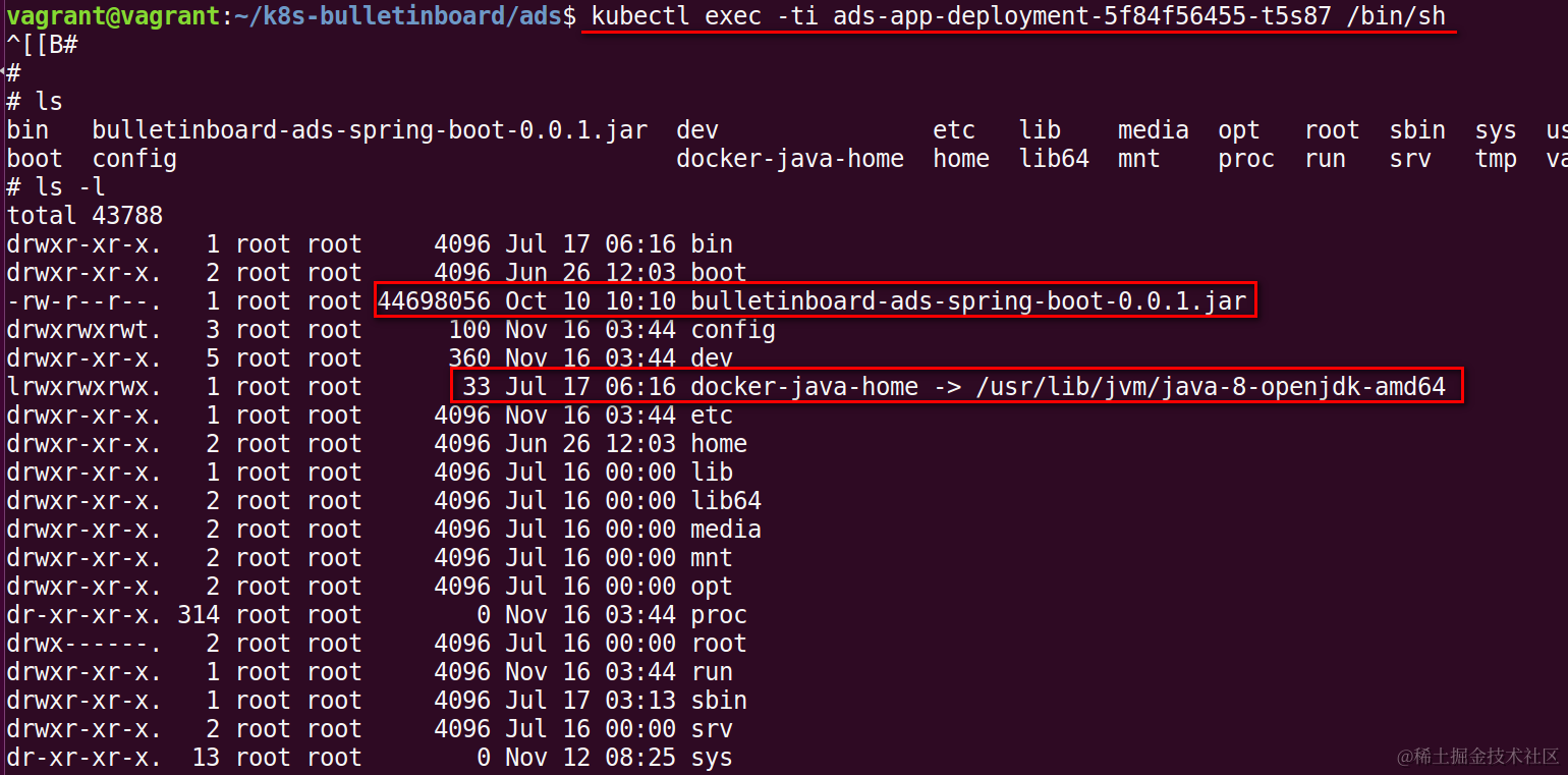 进入deployment对应的pod,可以查看到java应用对应的jar文件和JDK环境。