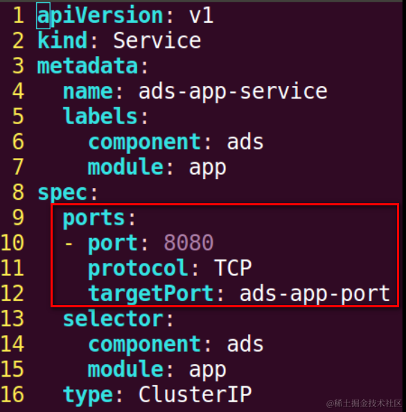 Spec部分的子区域ports可以定义多个port,通过符号"-"代表一个类似数组的结构:
