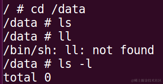 创建完毕之后,在容器里执行cd /data进入这个目录,这个时候还是空的。