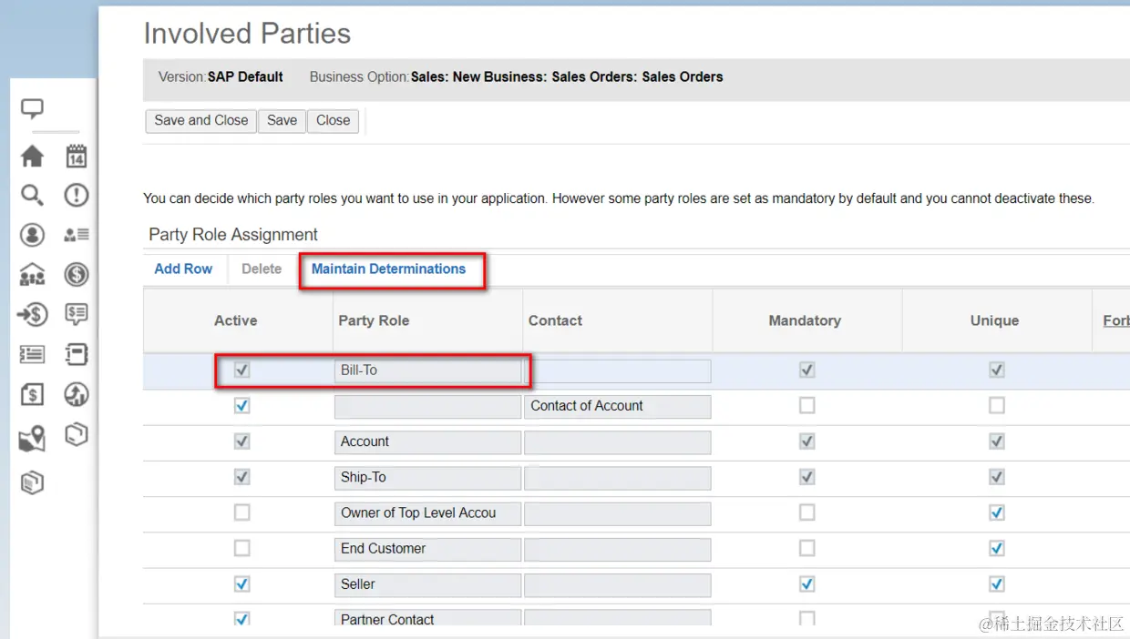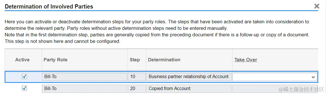 选中Bill to,点击Maintain Determination为其维护自动决定规则: