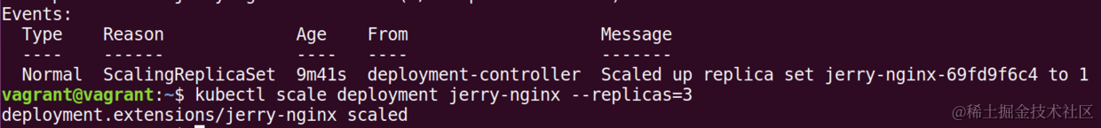 Normal ScalingReplicaSet 9m41s deployment-controller Scaled up replica set jerry-nginx-69fd9f6c4 to 1