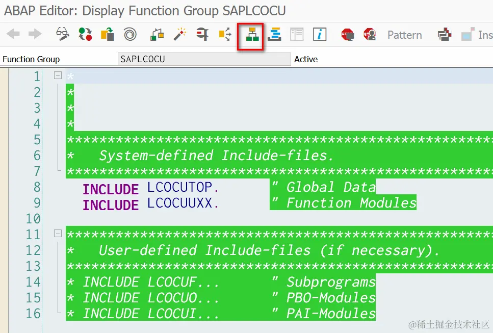 从而打开了这个程序所属的function group COCU,其对应的ABAP包为CO: