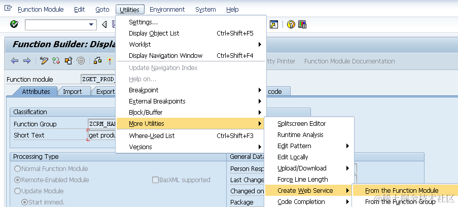 The following steps demonstrates how to expose a function module as a web service in CRM.