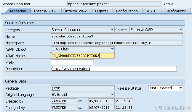 - go back to SOAMANAGER, find the consumer proxy created in step2: