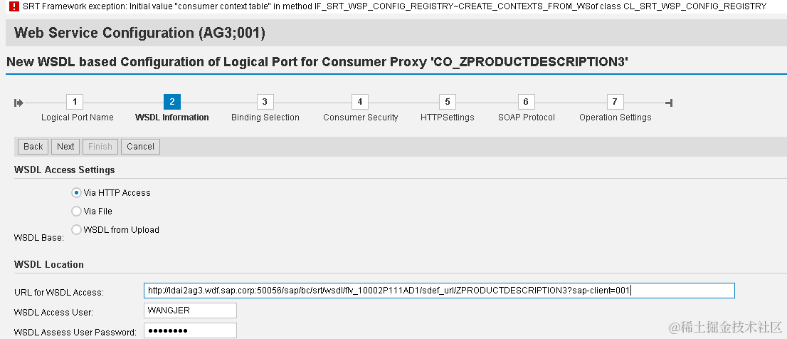 - Make sure you specify URL got from web service creation last step. If you just use the URL got from SE80 in tab “WSDL”, you will meet with below error.