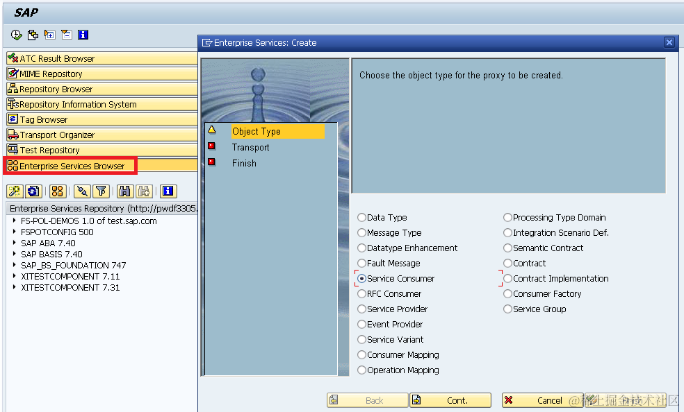 - tcode SE80, create a new service consumer: