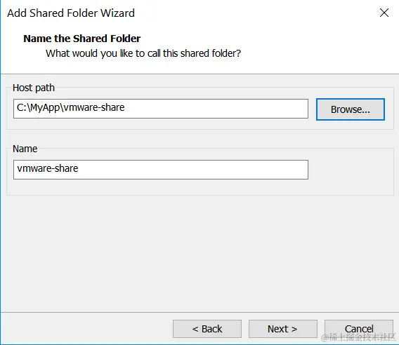 下图意思是将我宿主机Windows操作系统C盘下面的目录wmware-share作为共享文件夹,让虚拟机Ubuntu也能访问。