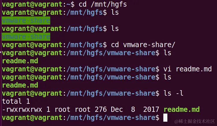 这个文件夹就立即出现在Ubuntu虚拟机里的目录: /mnt/hgfs: