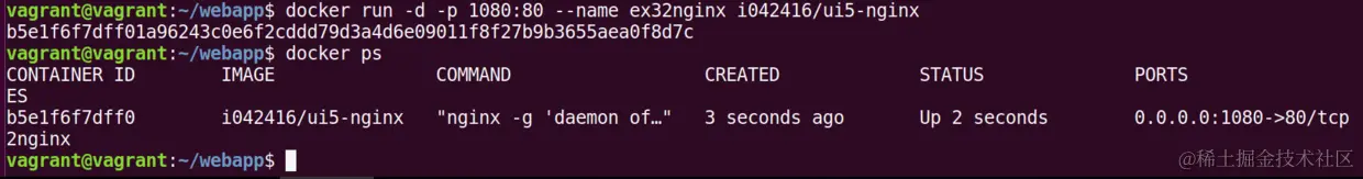 然后用命令docker run -d -p 1080:80 i042416/ui5-nginx运行: