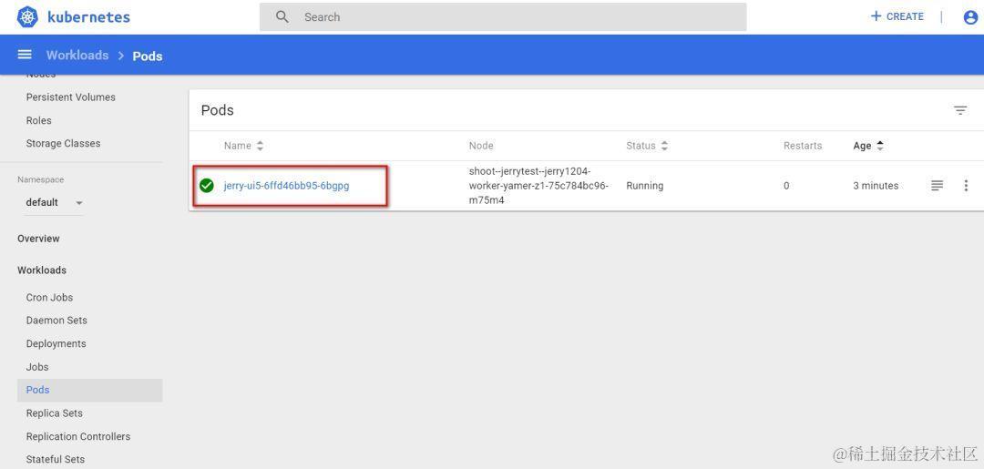 在Kubernetes web控制台里也一样能看到这个处于运行状态的pod: