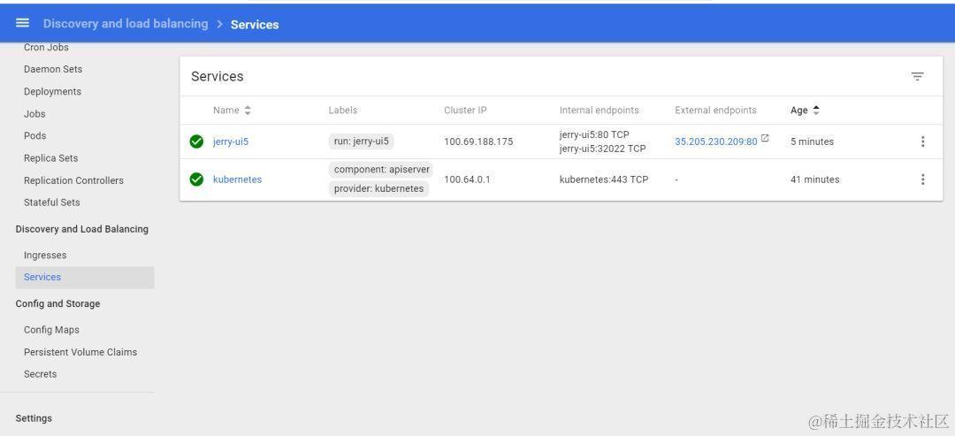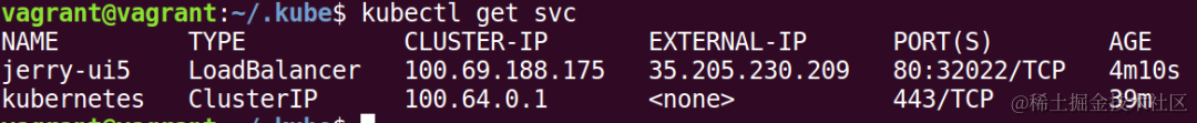 一旦expose命令执行后,get svc命令这次就返回了一个和deployment同名的service,暴露给外界访问的IP地址为35.205.230.209: