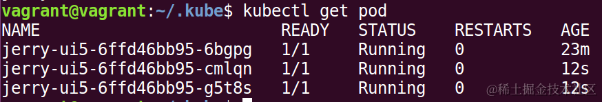 我们现在故意用kubectl delete删除一个pod,再次查看,发生一个新的pod瞬间就自动生成了,处于运行状态的pod总数仍然为3。