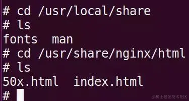 看到#提示符后,进入容器内部的目录: /usr/share/nginx/html
