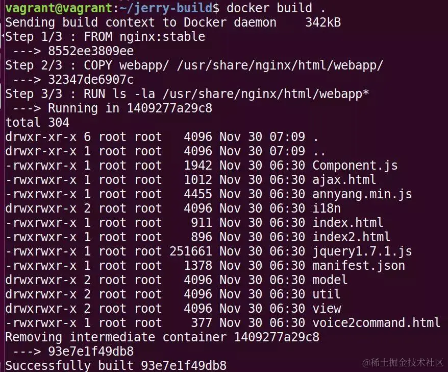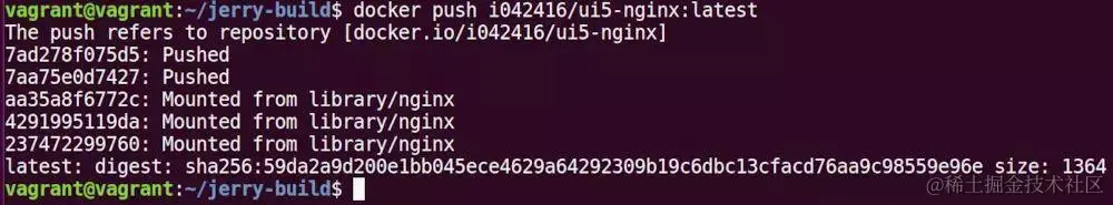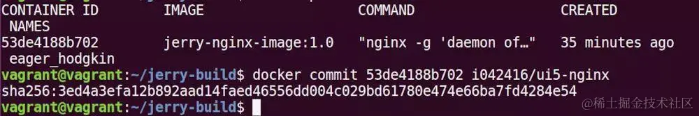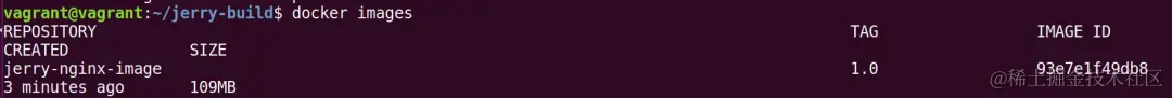看到上图"Successfully built(成功构建)"的输出信息后,我们加上参数**-t jerry-nginx-image:1.0**重新构建一个名为jerry-nginx-image的镜像: