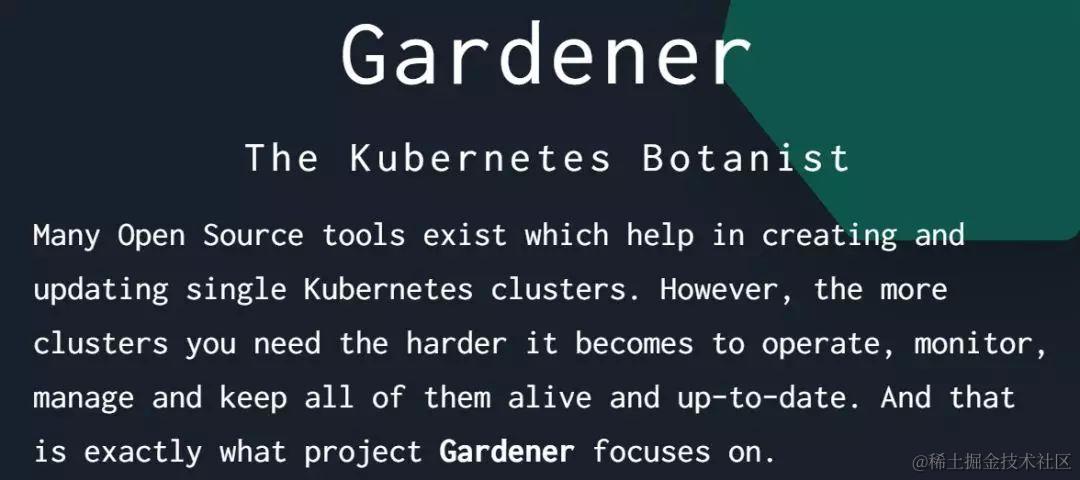 在我另一篇文章 站在巨人肩膀上的牛顿:Kubernetes和SAP Kyma 里我提到过Gardener, 一个开源的创建Kubernetes集群的解决方案: