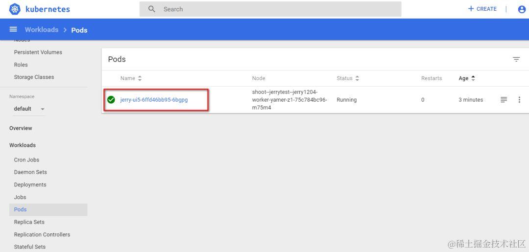 在Kubernetes web控制台里也一样能看到这个处于运行状态的pod:
