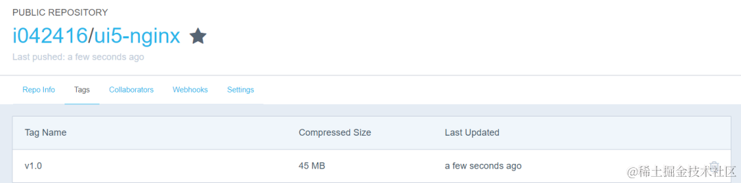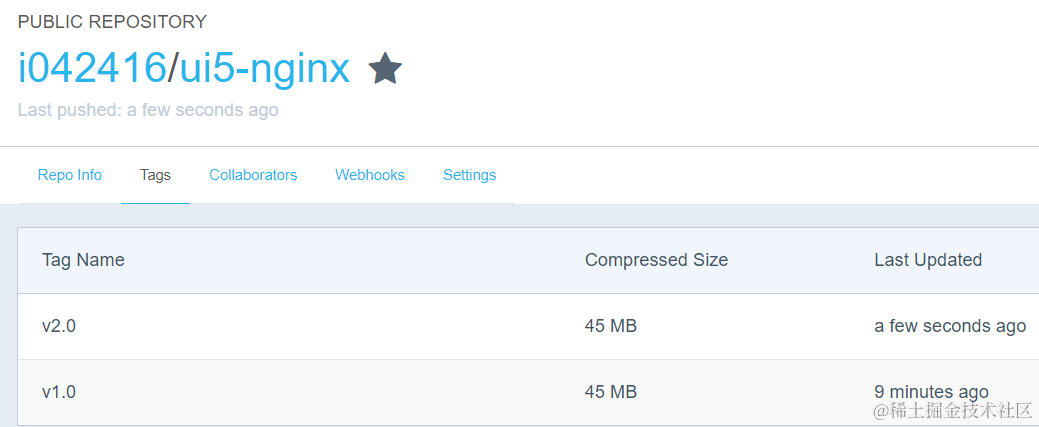 由于上一篇文章我上传到Docker Hub上的镜像的标签为默认的latest,所以我需要在Docker Hub上分别制造两个标签为v1.0和v2.0的镜像。