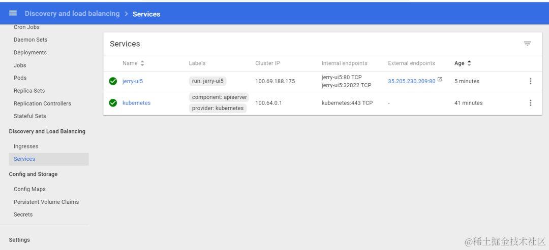 一旦expose命令执行后,get svc命令这次就返回了一个和deployment同名的service,暴露给外界访问的IP地址为35.205.230.209:
