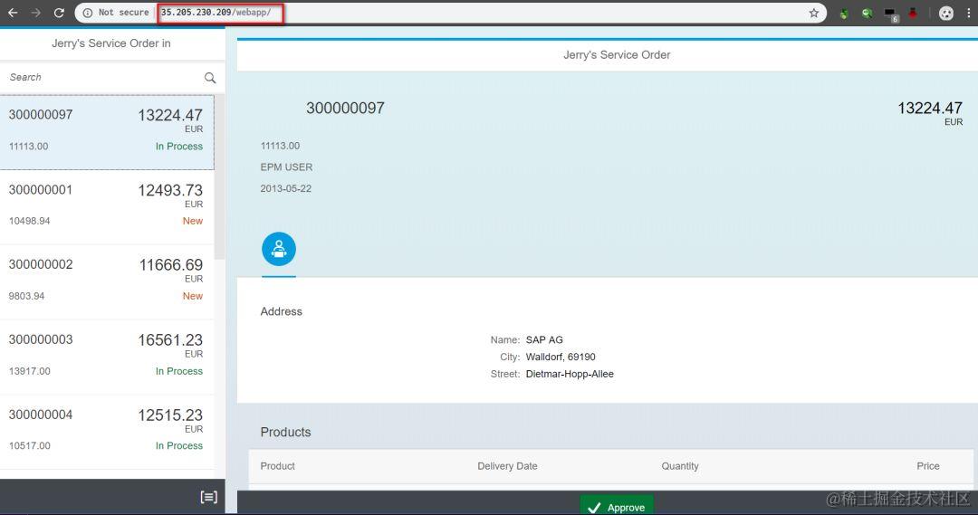于是,使用url 35.205.230.209/webapp就能访问运行在Kubernetes pod里的SAP UI5了:
