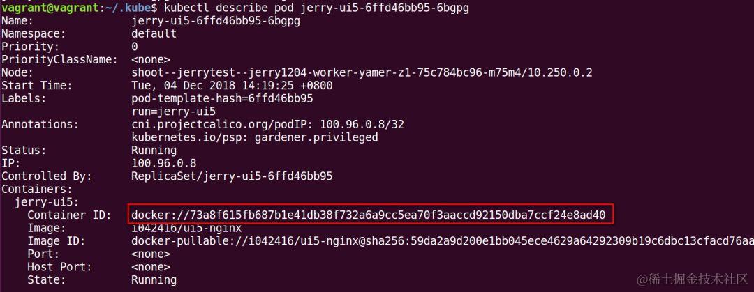 下图Container ID后面的docker://说明这是一个docker容器,当然并不意味着Kubernetes只支持Docker这一种容器技术,比如Kubernetes还支持CoreOS的Rocket。