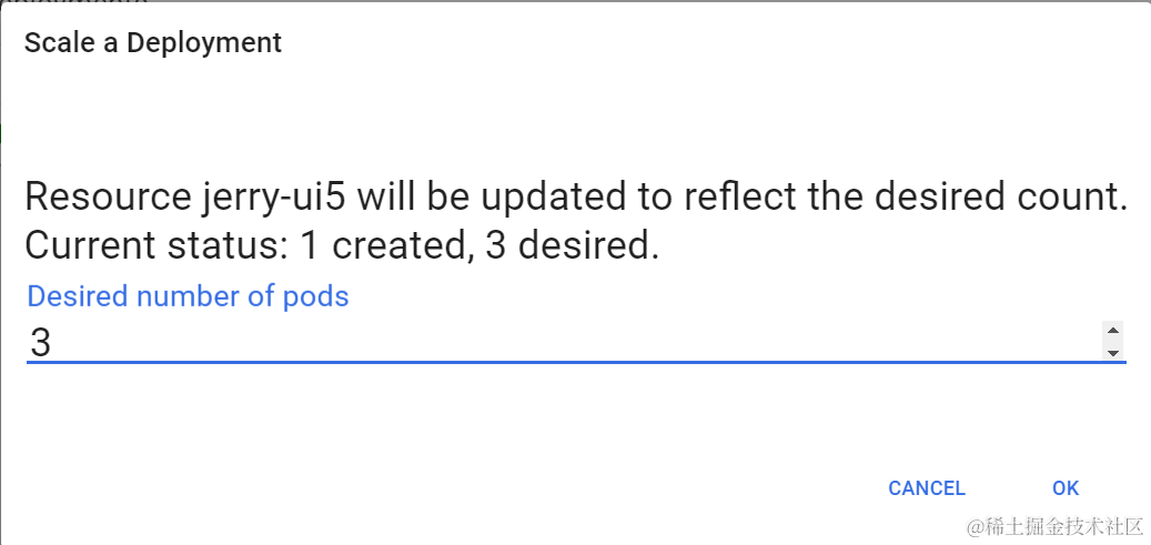 上图OK按钮点击后,再次执行kubectl get pod, 能观察到水平扩展执行之后,生成了两个新的deployment,所以这次get pod命令总共返回了3个pod,其中后两个pod从Age能看出是水平扩展执行之后刚刚创建的。