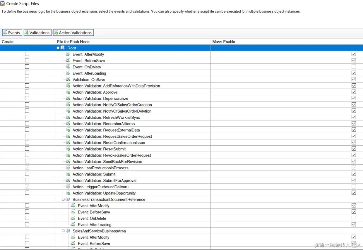 每个节点对应一些更底层的模型节点,上面可以注册各种事件处理函数。下图是Service Request这个BO的抬头节点的事件处理函数: