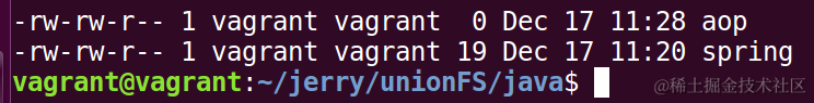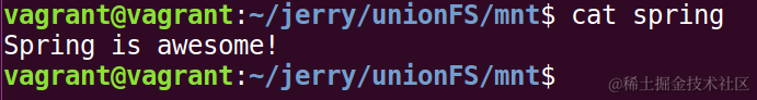 现在我到java文件夹里修改spring,比如加上一行spring is awesome, 然后到mnt文件夹下查看,发现mnt下面的文件内容也自动被更新了。