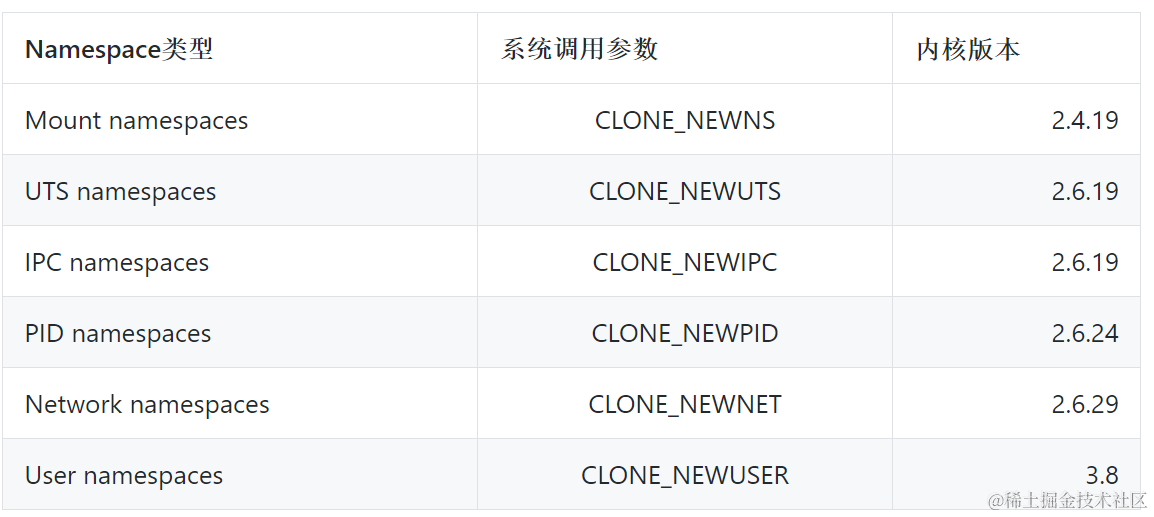 另一个维度的资源隔离技术,大家可以把这个概念和我们熟悉的C++和Java里的namespace相对照。