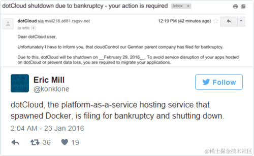 不过可惜的是,这家公司把Docker开源之后,于2016年倒闭了,因为其主业务PaaS无法和微软,亚马逊等PaaS业界巨头竞争,不禁让人唏嘘。