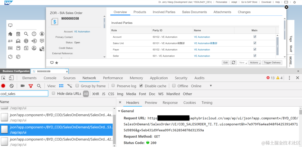 SAP C4C的UI都是基于MVC pattern设计的,首先在Chrome开发者工具里找到UI的模型名称:/BYD_COD/SalesOnDemand/SalesOrder/UI/COD_SALESORDER_TI.TI.uicomponent