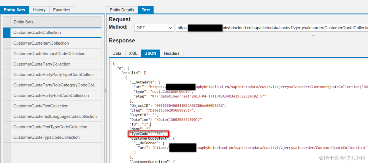后来在CustomerQuote这个BO上发现一个字段叫做TypeCode,才知道Sales Order和Sales Quote这两个业务模型底层的技术模型都是共享CustomerQuote这个BO,可以通过TypeCode来区分。