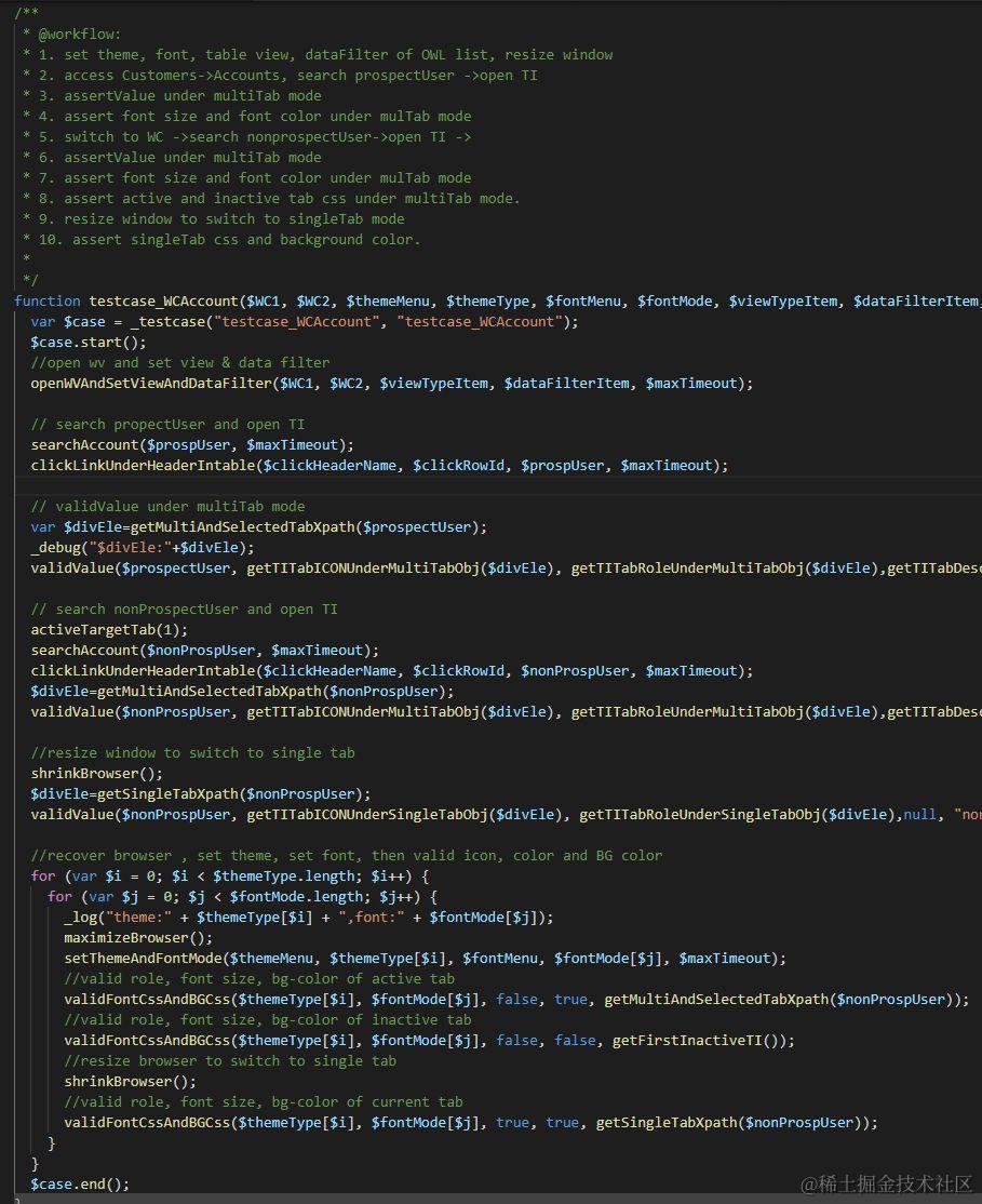 与此同时,该特性需要测试系统在不同的主题、字体大小下此特性也能正常工作。因此测试案例的流程如下(可参考代码注释部分):