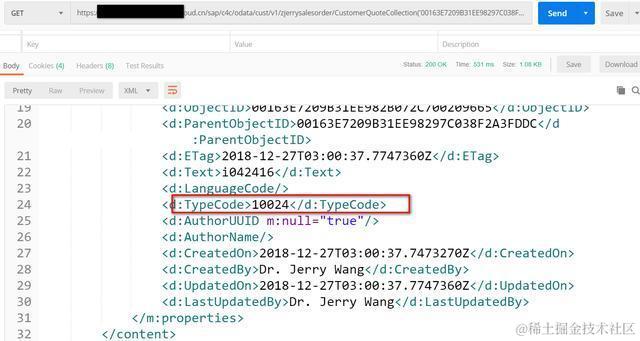 然后通过OData读取这条销售订单,OData url如下: