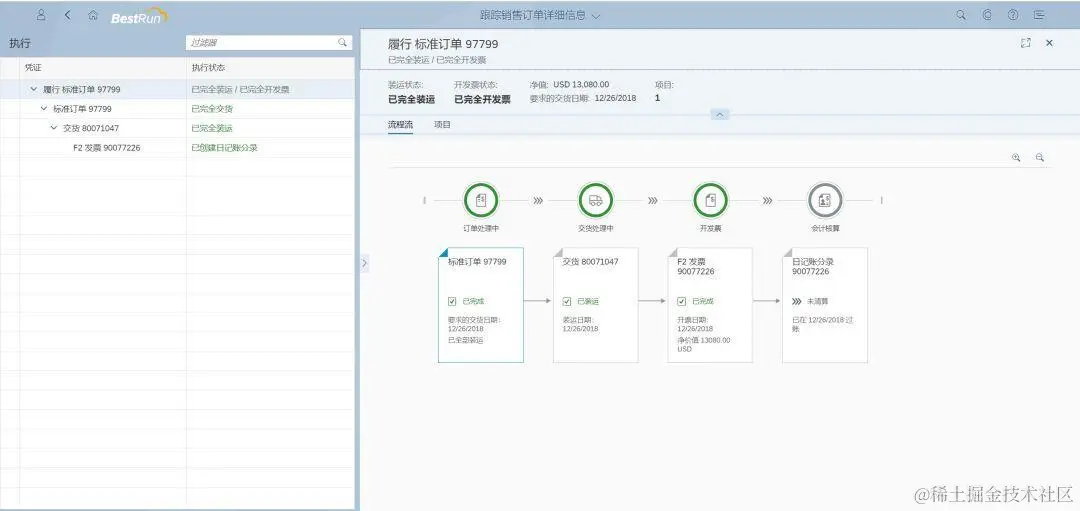 - 跨整个从订单到收款场景流程组件跟踪销售订单状态