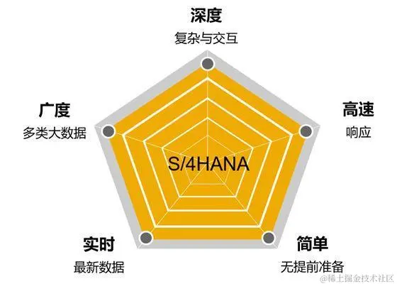 在S/4HANA里,第一次实现了OLTP和OLAP的完美结合,大部分的业务可以在一套系统的一个数据源上完成。