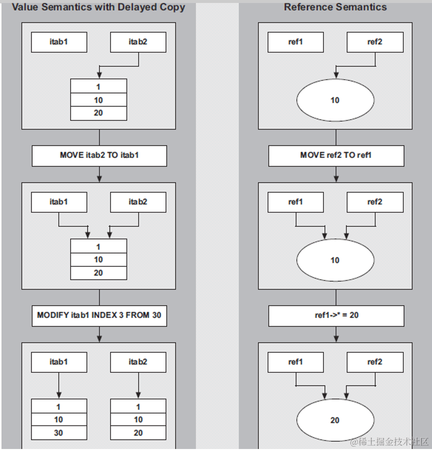 3. ABAP和很多其他语言一样,支持写时拷贝: