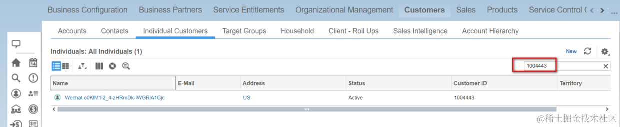 上述代码基于微信open IDo0KlM1i2_4-zHRmDk-IWGRlA1Cjc在系统里创建一个Individual customer。