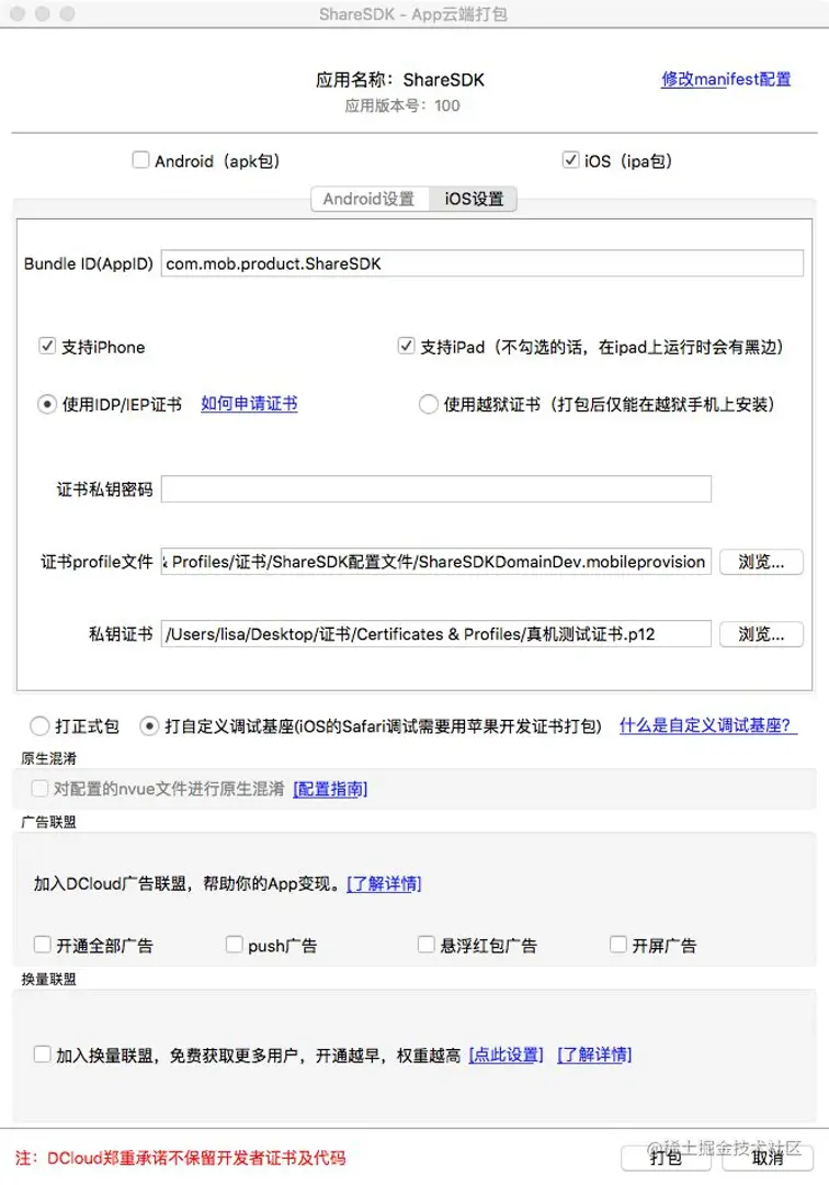 将证书等信息添加进去,等待云打包完成后。